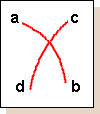 A third principle of perceptual organization is that of good continuity. This principle is that contours based on smooth continuity are preferred to abrupt changes of direction. Here, for instance, we are more likely to identify lines a-b and c-d crossing than to identify a-d and c-b or a-c and d-b as lines.
