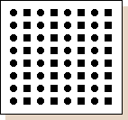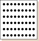 Here the little circles and squares are evenly spaced both horizontally and vertically so proximity does not come into play. However, we do tend to see alternating columns of circles and squares. This, the Gestalt psychologists would argue, is because of the principle of similarity - features which look similar are associated. Without the two different recurrent features we would see either rows or columns or both...