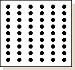 What you are likely to notice fairly quickly is that this is not just a square pattern of dots but rather is a series of columns of dots. The principle of proximity is that features which are close together are associated. Below is another example. Here we are likely to group the dots together in rows.