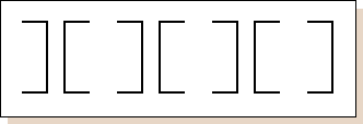 Here we tend to see three broken rectangles (and a lonely shape on the far left) rather than three 'girder' profiles (and a lonely shape on the right). In this case the principle of closure cuts across the principle of proximity, since if we remove the bracket shapes, we return to an image used earlier to illustrate proximity...
