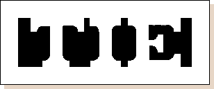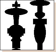 As an illustration of this Gestalt principle, it has been argued that it is easier to see Rubin's vase when the area it occupies is smaller (Coren et al. 1994, 377). The lower portion of the illustration below offers negative image versions in case this may play a part. To avoid implicating the surroundedness principle I have removed the conventional broad borders from the four versions. The Gestalt principle of smallness would suggest that it should be easier to see the vase rather than the faces in the two versions on the left below.