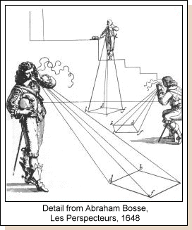 The Renaissance code of central, one-point linear perspective is thus not simply a technique for indicating depth and relative distance in a two-dimensional medium. It is a pictorial code reflecting the growing humanism of the period, presenting images from a single, subjective, individual and unique visual point-of-view. Mirroring the 'vanishing point' within the picture is the projected 'point of origin' in front of the canvas which was adopted by the artist and left vacant for the 'subject' whose position we adopt when we look at the picture (Nichols 1981, 53). From this position, the represented world is framed as if by a window on a wall. The framed image 'stands in for the world it represents as would an ordinary window if the view beyond it could somehow be imprinted on its surface' (ibid., 159). Alberti himself wrote that 'I inscribe a quadrangle of right angles, as large as I wish, which is considered to be an open window through which I see what I want to paint' (Alberti 1966, 56). Painters should 'seek to present the forms of things seen on this plane as if it were of transparent glass' (ibid, 51). The artist Albrecht Dürer reminded us that 'perspectiva is a Latin word which means a view through something' (Panofsky 1970b, 123).