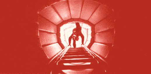 dollars, an actual centrifuge, thirty-eight feet in diameter, which spins on its axis at a maximum speed of three miles an hour. The centrifuge is big enough so that the astronauts in the film, played by Keir Dullea and Gary Lockwood, have plenty of room to move around inside of it. In order to direct them while they were inside, Kubrick installed a closed circuit television system which enabled him to monitor the activities in the |