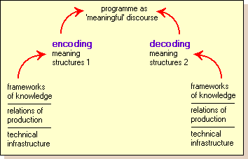 . Δυστυχώ, αυτό τείνει να δώσει την εντύπωση ότι οι διαδικασίες αυτές είναι πολύ προγραμματικές: η χρήση των όρων αυτών βέβαια έχει στόχο να τονίσει τη σημασία των σημειωτικών κωδίκων που εμπλέκονται και έτσι να τονίσει τους κοινωνικούς παράγοντες. Καθημερινές αναφορές στην επικοινωνία βασίζονται σε ένα 'μεταβιβαστικό υπόδειγμα, στο οποίο ο αποστολέας μεταδίδει ένα μήνυμα σε έναν παραλήπτη – ένας τύπος που περιορίζει τη σημασία σε 'περιεχόμενο' (που παραδίδεται ως πακέττο). Αυτή είναι επίσης η βάση του διάσημου υποδείγματος επικοινωνίας των Shannon και Weaver (1949), το οποίο δε λαμβάνει υπόψη τη σημασία του κοινωνικού πλαισίου.