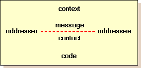 O προσαγορεύων στέλνει ένα μήνυμα στον προσαγορευόμενο. Για να είναι λειτουργικό το μήνυμα απαιτείται ένα πλαίσιο, στο οποίο να αναφέρεται (το 'αναφερόμενο' σε μιαν άλλη, κάπως διφορούμενη, ονοματολογία), που μπορεί να ληφθεί από τον προσαγορευόμενο, και έναν είτε λεκτικό ή ικανό να εκφρασθεί λεκτικά, κώδικα, ο οποίος είναι πλήρως, ή τουλάχιστον μερικά, κοινός στον προσαγορεύοντα και τον προσαγορευόμενο (η με άλλα λόγια, στον κωδικοποιό και τον αποκωδικοποιό του μηνύματος) και τέλος μια επαφή, ένα φυσικό δίαυλο και μια ψυχολογική σχέση μεταξύ προσαγορεύοντος και προσαγορευομένου, που καθιστά και τους δύο ικανούς να επικοινωνούν (Jakobson 1960, 353, επίσης στο Innis 1986, 150)