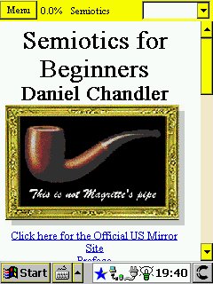 | Υπάρχει μιά έκδοση της Σημειωτικής για Αρχαρίους για προσωπικούς υπολογιστές μεγέθους παλάμης (Palmsize PCs) με το λειτουργικό WindowsCE και τον Starbuck bookreader. Βρίσκεται στο: http://www.adbosch.demon.nl/starbuck.htm |