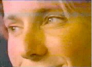 3   Close-up as she glances at him.