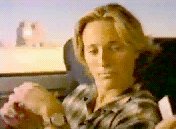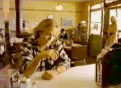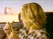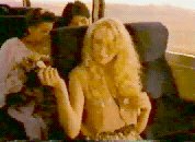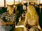 I have been using the world 'aisle' deliberately. The view of the bus is reminiscent of a wedding viewed from the altar: a young man and woman coyly sitting on either side of the aisle, the guests in the pews behind them. (Only the little boy - like a choirboy - is in front of them). The woman immediately behind the young woman is holding a bunch of flowers like a bridesmaid. There are other parallels too. The young man reaches in his pocket for the gum as a groom reaches for the ring. He gives it to her, and it is a symbol of their union. In the final shots, we see an image of joined hands (another symbol of marriage) and also - in the only merged shot of the whole sequence - a transformation in which two become one. (The slow and significant placing of the gum in the mouth suggests both oral sex and the communion service). There is a tension between this image of holy matrimony and the story of a casual pick-up, between a sexual union sanctified by society and one quite outside its institutionalized constraints. The casual nature of the encounter is emphasized by both the words and the period of the song. This clash of the matrimonial and the extra-marital is an image of fascination to the 1980s and 1990s; it is frequently used, for example, in the stage and video performances of Madonna.
