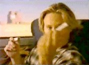 8   He turns to his right (away from camera) to look at apparently empty packet.