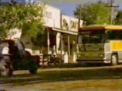 17 '...hesitate...' Coach pulls up at café.